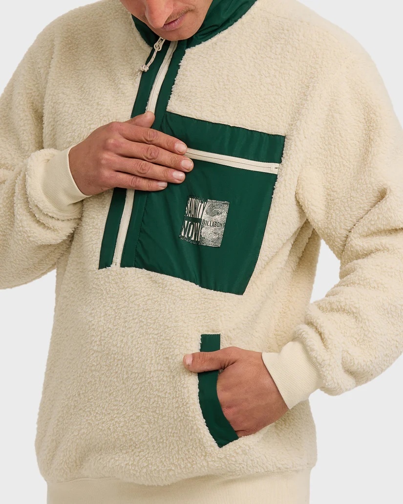 The throwback mock neck sweatshirt brings retro vibes with an oversized fit and contrast ripstop panels. Cozy fleece construction pairs with practical chest and hand pockets for everyday comfort.